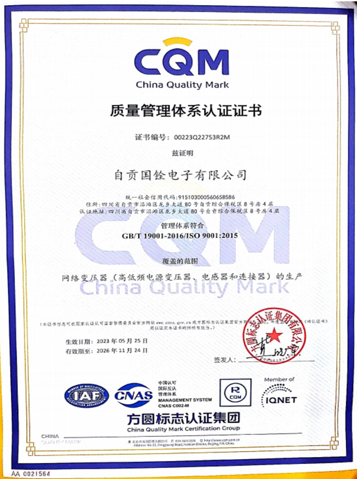 自貢國銓電子有限公司創(chuàng)辦于2012年,集研發(fā)、生產(chǎn)、銷售及服務于一體 ,并已在美國、東莞、上海等地區(qū)成立辦事處和分公司 。目前致力于網(wǎng)絡連接器(RJ45)、網(wǎng)絡濾波器、網(wǎng)絡變壓器、以太網(wǎng)磁性組件、光伏電源、逆變器類變壓器和電感器、汽車BMS類變壓器的研發(fā)與制造。